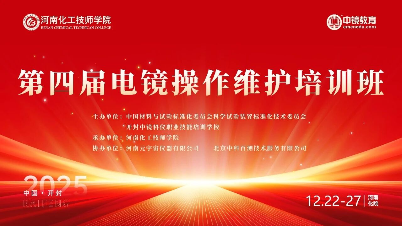 热烈祝贺第四届电镜操作 维护培训班成功举办 2025年12月22日至27日,为期六天的第四届电镜操作维护培训班在河南化工技师学院圆满落幕。本次培训由中国材料与试验标准化委员会科学试验装置标准化技术委员会、开封中镜科仪职业技能培训学校联合主办,河南化工技师学院承办,河南元宇宙仪器有限公司、北京中科百测技术服务有限公司协办。 2025年12月23日上午8:00,第四届电镜操作维护培训班开班仪式在河南化工技师学院现代实训大楼一楼汇报厅隆重举行。河南化工技师学院副校长于海,中镜科仪集团董事长郭新勇,总经理任江鸣,河南化工技师学院检验检测产业学院副院长李晓英、教师景国岐,中镜科仪集团校企中心主任董保杰及全体参训学员出席仪式。 开幕式现场 本届培训班内容丰富,涵盖电镜基础理论与应用、透射电镜结构拆装演示与实践(含镜筒、控制台拆装分组练习)、真空故障检修、合轴操作等多个方面,注重理论传授与实践能力培养相结合。在专业教师的指导下,学员们亲自动手进行透射电镜整机拆装,深入理解了电镜的结构与工作原理。课堂上,学员们展现出积极主动的学习态度,认真聆听专家讲解,详细记录重点,并积极互动交流。在实践操作环节,学员们以小组为单位紧密合作,分享经验,共同攻克任务。面对复杂的结构与故障,他们充分发挥团队协作精神,共同探寻解决方案。 值得一提的是,本次培训创新引入了混合现实(MR)技术,学员们借助先进的虚拟设备,仿佛置身于真实的电镜操作环境之中,通过虚拟操作完成电镜的拆装流程。这种创新的培训方式,打破了传统培训的时空限制,为学员提供了更加直观生动的学习体验,激发了学员们的学习兴趣和探索欲望。 体验透射电子显微镜 数智化拆装项目(MR) 2025年12月27日,培训班圆满落幕。结业仪式上,中国人民解放军海军军医大学教授、中国电子显微镜学会副理事长、第三届电镜专业教指委杨勇骥发表致辞,祝贺学员顺利结业,鼓励大家将理论知识与操作技能应用于实际工作,勇于创新,提升专业素养,为推动电镜技术发展贡献力量。随后,广州国家实验室陈伟栋作为学员代表上台发言。他代表全体学员感谢主办、协办单位及授课专家,称此次培训系统掌握了电镜操作维护知识与技能,拓宽了视野,并表示将所学转化为工作能力,提升效率与质量,共同为电镜领域科研与产业发展贡献力量。 杨勇骥致辞 陈伟栋发言 学员代表发言结束后,河南化工技师学院副校长赵峰、中镜科仪集团董事长郭新勇、上海大学工程师寇春合共同为学员颁发结业证书。 颁发结业证书合影 本届培训班,为学员们搭建了一个学习交流的平台,通过系统的理论学习和实践操作训练,学员们的电镜维护技能得到了显著提升。同时,引入的虚拟实验MR技术等创新培训方式,也为电镜培训领域带来了新的思路和方法。相信学员们在此次培训中所学所得,将在今后的工作中发挥重要作用,推动电镜技术在各领域的广泛应用和发展。 全体合影