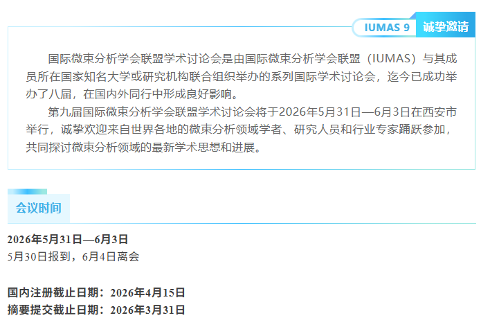 【行业会议】第九届国际微束分析学会联盟学术讨论会(IUMAS 9)· 第二轮通知