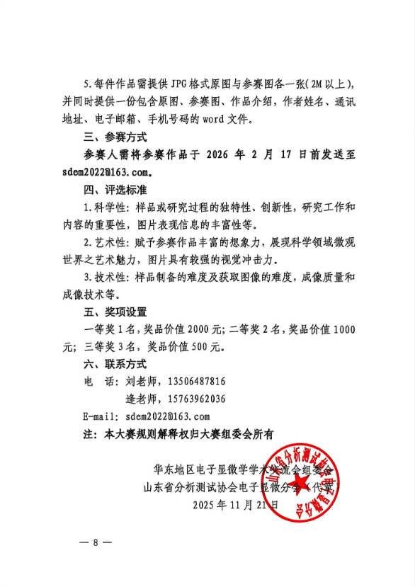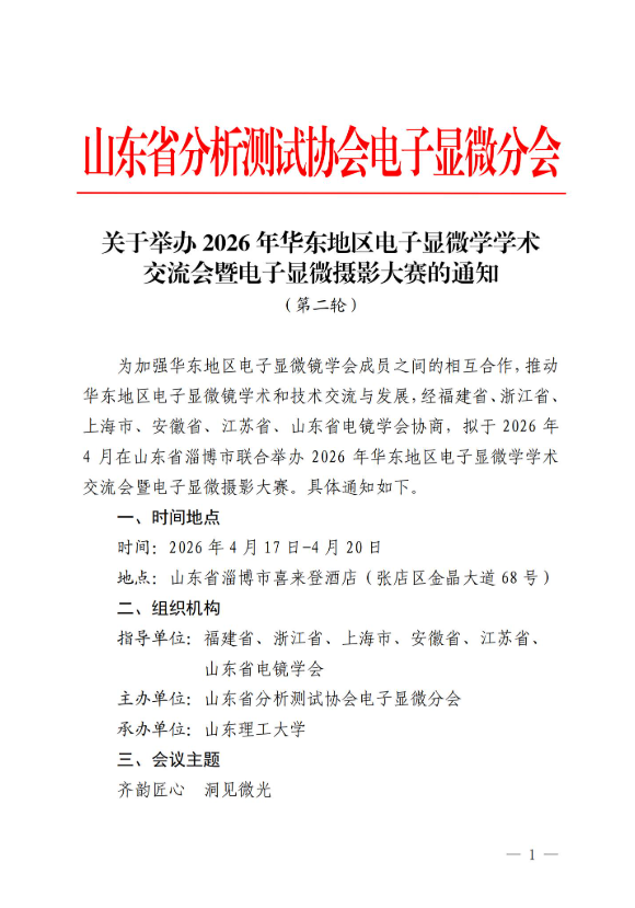 【行业会议】关于举办2026年华东地区电子显微学学术 交流会暨电子显微摄影大赛的通知 (第二轮)